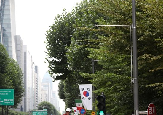 江南区は昨年7月から国際交流複合地区イメージの造成のために、太極旗と共に世界各国の国旗を掲げている。テヘラン路と永東大路一帯は、国際金融、貿易、展示・コンベンションが活発なソウルの中心地域で、昨年まで“太極旗特化通り”として運営されていた。